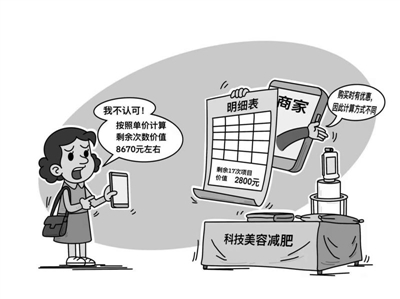 4月25日,商家发给我一张明细表,上面写明我剩余17次仪器减肥项目仅价值2800元。我表示按照单价计算,剩余次数价值8670元左右,但商家表示购买时有优惠赠送,因此计算方式不同。商家从未给我任何优惠赠品,我们也没有签署合同,我希望能协商一个合理的方案。