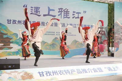 昨天下午,甘孜州农特产品推介会暨“遇上雅江”品牌发布会在吴山广场举行。自杭州与甘孜结对以来,两地携手书写着新时代的“山海情”。此次,杭州市上城区与甘孜州雅江县联合打造的消费帮扶品牌“遇上雅江”正式亮相,标志着两地从“输血”迈向“造血”,从“帮扶”走向“共赢”的新阶段。图为推介会现场文艺表演。商报记者 项凯 摄影报道