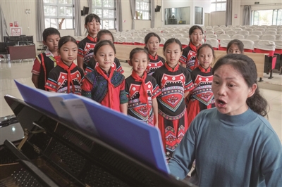 5月27日,云南省蒙自市团结小学“小白鹇鸟”合唱团学生在音乐老师指导下练声。合唱团团员大多是少数民族孩子,他们的父母大多在外务工。十岁的哈尼族女孩李聪惠是合唱团的一员。她最大的理想就是要继续歌唱——唱给身边的朋友听,唱给远方的父母听。她希望能成为一名歌唱家,让自己的歌声飞得更远。