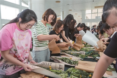“没想到在办公楼里也能这么沉浸地过端午,包粽子、点茶、做香囊、扎艾束,每一项都亲手体验了,感觉这个节过得特别‘实’!”拿着亲手制作的艾草花束,小吴不禁感慨。