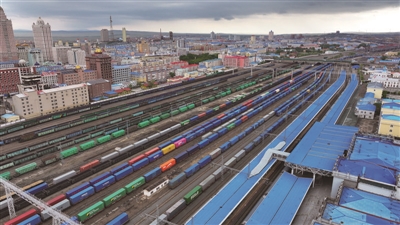 6月2日,中欧班列在中国铁路哈尔滨局集团有限公司满洲里站编组场内等待发车。记者从中国铁路哈尔滨局集团有限公司了解到,今年前5个月,经中欧班列“东通道”通行班列突破2000列,通行量占全国总量26.3%,其中回程班列通行量占全国回程总量31.9%,为服务高质量共建“一带一路”注入更多动能。 中欧班列“东通道”由满洲里、绥芬河、同江铁路口岸组成,截至目前,通行线路已达27条,可通达波兰、德国、荷兰等14个国家,联通我国长沙、郑州、成都、苏州等60余个城市,成为中国与“一带一路”共建国家互联互通互惠的重要载体。