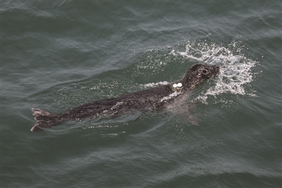6月6日,在辽宁大连,5只被救助的西太平洋斑海豹幼崽与4只成年西太平洋斑海豹被放归大海。西太平洋斑海豹作为国家一级保护野生动物,是唯一能在我国海域进行繁殖的鳍足类海洋哺乳动物。被救助的斑海豹在放归大海前,辽宁省农科院所属辽宁省海洋水产科学研究院对它们进行了系统的救助饲养、野化训练和健康评估。这是被放归的西太平洋斑海豹在大连市三山岛附近海域活动。