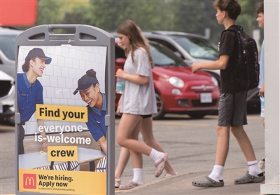 6月6日,在加拿大多伦多,行人从一处快餐店外的招聘广告前经过。