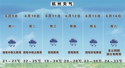 具体到杭州,“雨雨雨”依然是主基调,在梅雨带持续影响下,今明两天仍有较大范围持续性强降雨,雨量以中到大阵雨为主。