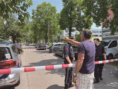 6月10日,警察在奥地利格拉茨市枪击事件现场附近执勤。奥地利施蒂里亚州首府格拉茨市市长埃尔克·卡尔10日说,格拉茨市一所学校当天上午发生枪击事件,造成至少10人死亡,另有数人受伤。目前,警方已封锁学校。