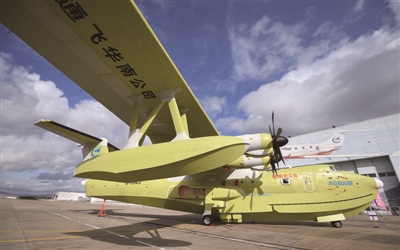 6月11日,我国完全自主研制的大型水陆两栖飞机AG600“鲲龙”在广东珠海获颁中国民航局生产许可证,标志着AG600飞机正式迈入批量生产阶段。这是在珠海中航通飞华南飞机工业有限公司,现场展示的批量生产的首架AG600飞机。