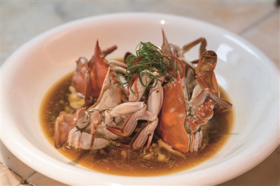 倒立蟹是大唐海鲜招牌中的招牌,不少人就是从这道菜认识大唐海鲜、认识老唐的。“当时央视过来拍过这道菜,很多人叫它‘央视倒立蟹’,像我们家这个倒立蟹,卖了超过十万只了。”老唐说。