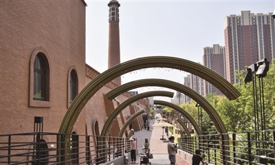 6月11日,游客在北京市海淀区西三旗砖窑里园区参观南北长180米的轮窑。砖窑里园区的前身是建于1954年的北京新都砖瓦总厂,承载着北京早期城市建设的厚重记忆。随着北京市实施老旧厂房改造项目,这座停产多年的工业遗址焕新成一座文化艺术综合体。长180米的轮窑保留了砖窑的外貌,窑炉内成为艺术展览场所、怀旧餐厅、阅读空间等,高大的烟囱也变身为全息投影空间。开放一年多,园区已成为游客参观和感受艺术熏陶的宝地。