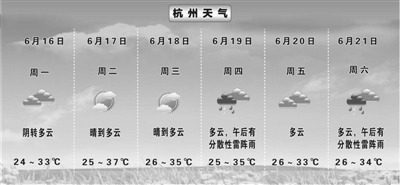 商报讯(记者 周振琪 骆静怡 制图 占丽骏)刚刚过去的周末,天气舞台可谓“热闹非凡”。台风残余云系和冷空气“联手搞事情”,浙江自西向东迎来强降雨,部分地区甚至遭遇暴雨、大暴雨的“洗礼”。昨天早晨起,杭州出现区域性大雨暴雨,似乎开启“疯狂倒水”模式。经历了最强降水时段,“雨水君”的影响逐渐进入尾声,本周杭城天气舞台将开启晴热模式,进入“梅中有伏”状态。