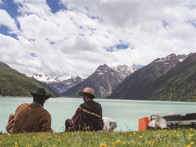6月21日,游客在四川省甘孜州德格县境内的玉龙拉措观光休闲。玉龙拉措位于川藏公路北线国道317线南侧。白雪皑皑的雀儿山下,蓝色的湖面如同宝石,湖光粼粼,风光醉人。湖畔的雀儿山是甘孜州的西北天险,最高峰海拔6168米,民间流传着“爬上雀儿山,鞭子打着天”的说法。1951年雀儿山公路修通,从此高峻险要的雀儿山不再高不可攀,美丽的雪山湖泊玉龙拉措也由此走入人们视线。近年来,当地借助川藏公路旅游热,推进“文化+乡村”旅游,推出最美徒步线路等,力争把玉龙拉措景区打造成生态风景旅游胜地。
