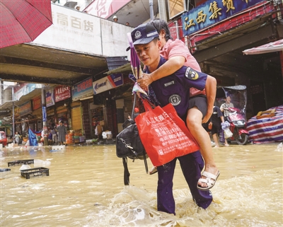 6月24日,在贵州省黔东南州从江县,救援人员将受灾群众转移至安全地带。当日,据贵州省黔东南州从江县、榕江县防汛抗旱指挥部介绍,经会商研判,两地先后决定于24日10时40分和12时起,将防汛应急响应从Ⅱ级提升至I级。