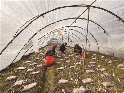 在凤川街道的“牵线搭桥”下,大源村股份经济合作社与贵州发鑫农业发展有限公司达成合作,形成了“企业+村集体+农户”的利益共同体,贵州发鑫农业发展有限公司提供菌种并全程进行技术指导,村集体以土地入股,村民以劳动力参与。