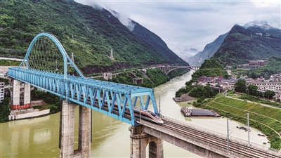 6月27日,新建重庆至厦门高速铁路(渝厦高铁)重庆东至黔江段开通运营,渝厦高铁重庆东至长沙段全线贯通,重庆至长沙最快3小时53分可达,旅行时间大幅压缩。同日,西部地区最大高铁枢纽站重庆东站同时投入使用。这是首发高铁班列驶过渝厦高铁彭水清水坪乌江特大桥(无人机照片)。