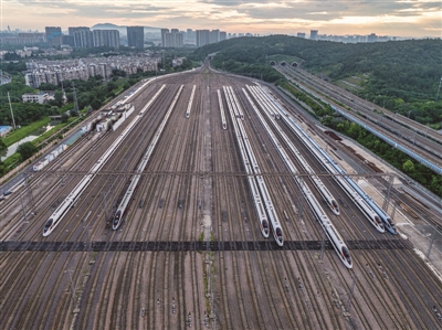 这是6月30日在南京动车段南京南动车运用所拍摄的动车组列车。7月1日零时起,全国铁路将实行新的列车运行图。调图后,全国铁路安排图定旅客列车13302列,较现图增加236列;开行货物列车23635列,较现图增加39列,铁路客货运输能力、服务品质和运行效率进一步提升。