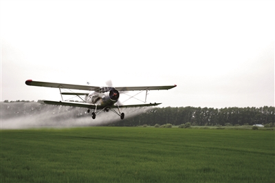 7月2日,在黑龙江北大荒农业股份有限公司八五六分公司第六管理区一处水稻田,一架农用飞机进行航化作业。时下,北方正处于农作物“健身防病”的关键时期,黑龙江垦区北大荒集团各农业生产单位陆续开展农田航化作业,通过防病、追肥、灭虫统防统治,为作物生长“空中护航”。