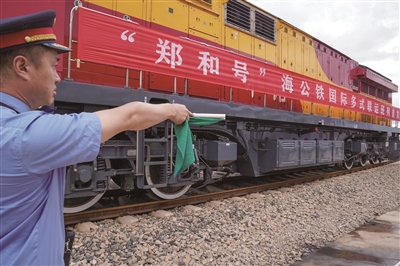 7月4日下午,“郑和号”海公铁国际多式联运班列首发列车从云南省昆明市腾俊国际陆港公铁联运中心发车,货物经中老铁路抵达老挝万象后再分成三条线路,分别运至泰国、新加坡和孟加拉国,开辟了中国昆明至孟加拉国吉大港的全新路线。这是昆明铁路局集团助理值班员在“郑和号”班列首发列车发车前确认发车信号。