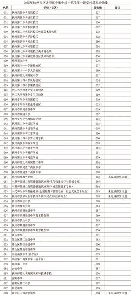 商报讯 (记者 严斐) 昨天,杭州市区各类高中集中统一招生第一段录取学校分数线公布:杭州第二中学滨江校区最低录取分数线为630分,比去年高7分;杭州学军中学西溪校区629分,比去年高7分;杭州高级中学贡院校区627分,比去年高8分。