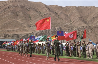 7月15日,“锋刃-2025”国际狙击手射击竞赛在位于新疆乌鲁木齐的武警部队某训练基地开幕,来自20多个国家的50余个狙击小组参赛。这是中国人民解放军陆军参赛队员步入现场。