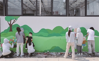 7月15日,在诸暨市安华镇丰江周村,浙江农林大学暨阳学院设计专业的学生们创作墙绘,美化乡村人居环境。暑假期间,浙江省绍兴市文化特派员陈航峰带领浙江农林大学暨阳学院的10余名师生,在绍兴诸暨市安华镇丰江周村开展农产品包装设计、乡村景观设计改造、爱心食堂志愿服务等暑期文明实践活动。
