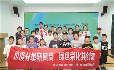 为深入推进垃圾分类工作,余杭区瓶窑镇崇化村近日开展了一场别开生面的垃圾分类宣传活动。活动以“垃圾分类新风尚,绿色崇化共创建”为主题,通过趣味互动和实践体验,让30余名小朋友在寓教于乐中学习环保知识,养成绿色生活习惯。