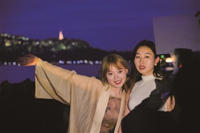 昨天,杭城温度迎来本周最鼎盛阶段。据市气象台消息,今天,受到切变(指风向突变)线发展的影响,杭州上空云量增多,午后雷阵雨条件转好,气温会略有降低,主城区最高气温在36℃左右,明天开始最高气温将降至33-35℃。图为昨天傍晚游客在西湖边享受惬意的蓝调时刻。