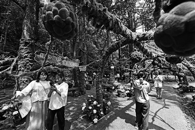 “花溪水阶”场景的尽头便是坐船观赏溶洞的码头,这个设计也得到了本地游客唐小姐的认可,“之前进来就是直奔坐船,这次来了感觉很不一样,多了这么多拍照打卡的地方,更好玩了。”