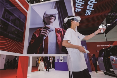 观众在第三届链博会数字科技链展区高通展台内体验搭载骁龙处理器的智能设备
