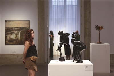 7月14日,参观者在意大利首都罗马观看“2025无问西东国际对话展:从上海到罗马”的展出作品。由中国和意大利两国文化机构主办的“2025无问西东国际对话展:从上海到罗马”14日在位于罗马的意大利国家现当代美术馆亮相。本次展览将持续至9月14日,汇聚了47位中国和意大利艺术家的作品,通过绘画、雕塑等多元媒介,构建起一场跨越地域、文化与时空的当代艺术对话。