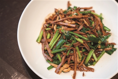 腊笋小炒,要把煨好的腊笋晾干水分后再上锅炒制。锅气燎过,腊笋的干香、肉的荤香混着酱油的微甜,浓得恰到好处,吃完满口香,是一道难得的下饭好菜。