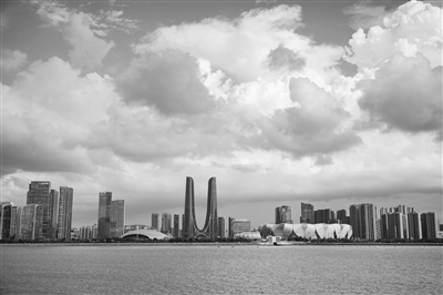 台风前夕,昨天下午,杭州奥体中心上空,“风起云涌”。摄影 商报记者 项凯