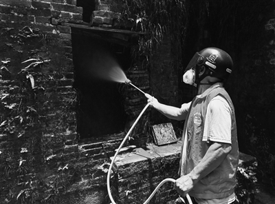 7月25日,工作人员在佛山市顺德区庄头村喷药消杀蚊虫新华社发