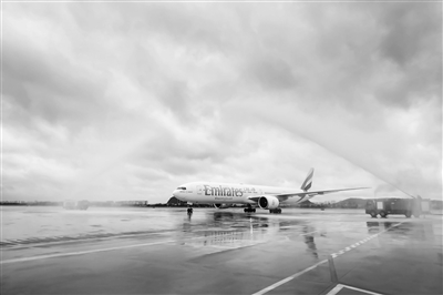 商报讯(记者 朱慧丽 通讯员 施东杰 丁梦 余熙楚娃 邵诗杰)昨天15点24分,随着EK310航班缓缓穿过“水门”滑入422机位,标志着杭州机场正式迎来全球“巨头”航司——阿联酋航空。杭州也成为阿联酋航空继京、沪、穗、深后在中国内地开通的第五个门户航点。