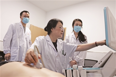 8月1日,国家卫生健康委选派的多地医疗专家抵达四川省凉山彝族自治州雷波县人民医院,开启为期一个月的驻点帮扶工作。这是沈阳市中医院的邵丽珠医生(中)查看患者病情。
