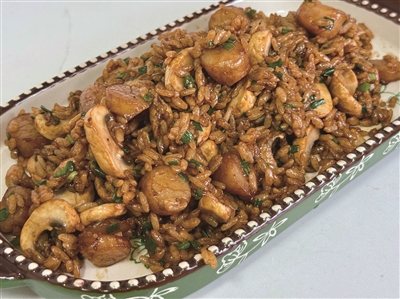 商报记者 王然 通讯员 邵正涵 热油锅煸出的葱油冒着香气,扇贝在饭粒间藏着海的清鲜,口蘑切得薄透,吸饱了酱汁后软嫩得会在舌尖打滑。 米饭炒得粒粒分明,裹着葱油的焦香,嚼起来带着微微的韧劲。扇贝的鲜甜、口蘑的菌香,混着葱花的辛香,在嘴里层层化开。不用配菜也能吃得飞快,每口都有不同的鲜灵劲儿,吃完碗底只剩几滴葱油,忍不住再添一勺。快来试试这道超落胃的扇贝葱油炒饭。 所需食材:扇贝、口蘑、黑胡椒粉、蒜、料酒、蚝油、生抽、盐、白糖、熟米饭、老抽、葱末。 制作方法: 扇贝洗净后用黑胡椒粉腌制十分钟,口蘑切片备用; 热锅冷油,放蒜炒香; 放入扇贝翻炒; 倒入料酒和口蘑,翻炒均匀; 倒入蚝油和生抽,继续翻炒; 放入盐、白糖、熟米饭和老抽,翻炒均匀; 放入葱末翻炒均匀即可。