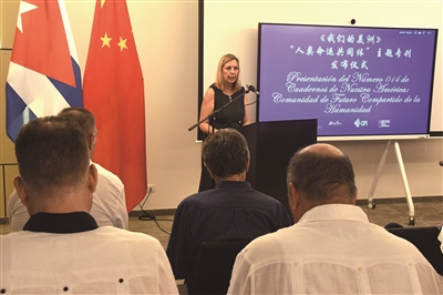 8月1日,古巴外交部副部长何塞菲娜·比达尔在哈瓦那举行的主题专刊发布会上致辞。古巴国际政治研究中心学术季刊《我们的美洲》8月1日在首都哈瓦那举行“人类命运共同体”主题专刊发布会。本期专刊汇集了20多位中古学者和外交官的研究文章,内容包括中国外交理念及其在国际事务中的实践、中古双边关系历史与现状等。