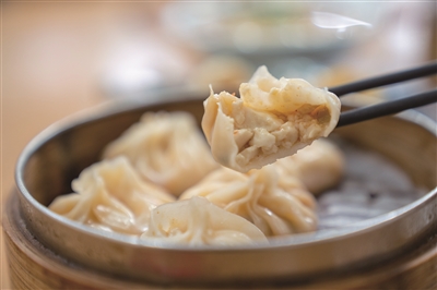 “他们家在这里开了多久我就吃了多久,像来得早的话,我就要吃一笼豆腐小笼的,这个就是要现包现吃,吃这个鲜味。”豆腐小笼上桌,王先生左手勺、右手筷,一笼包子很快就没了踪影。