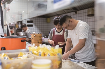 “杭州离我们嵊州近,在杭州的嵊州人也多,我想我们在北京做的起来,那么到杭州肯定也可以。”就这样,张童在杭州新青年广场开了第一家嵊州小吃店。之后陆续调整店址,5年前,把店开在了绿地运河商务中心,从开始创业到现在,张童夫妻俩几乎都在店里。“做小吃这个东西就是要一直守在店里,一次两次味道差了,客人就不来了。”张童说。