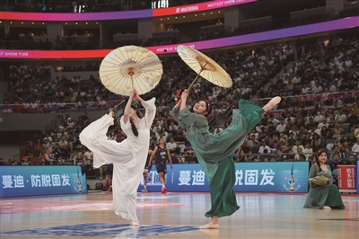 现场还上演了别开生面的三分球大赛。诸暨队的杨少炜和CBA(中国男子篮球职业联赛)职业球员吴前搭档,杭州队的伍王超则和CBA职业球员李悦洲组队。经过两轮激烈比拼,最终伍王超和李悦洲组合获胜。