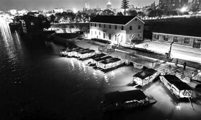 当晚,塘栖古镇摇橹船夜游项目进入试运营。今天起,游客可以乘坐传统摇橹船,在夜色中泛舟运河,体验独特的“夜游运河”风情,定价200元/船,单人40元/位。