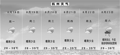 商报讯 (记者 周振琪 制图 占丽骏) 刚刚过去的这个周末,副高西伸加强控制,浙江进入了高空592百帕的“包围圈”中,“热”成为当仁不让的关键词,杭州主城区最高温连续站上37℃,走在户外“炙烤感”强烈。今天是“三伏”的最后一天,晴热延续。接下来,告别伏天,高温却没有“收手”的意思,反而继续加码,明起高温强度会再上一个台阶,暑热“加戏”即将上演。