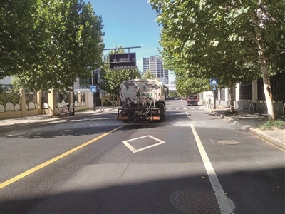 针对“秋老虎”期间路面温度居高不下、易起扬尘的特性,上城区城管局灵活优化作业时间,尽量避开一线环卫工人正午高温时段户外作业。同时,加大机械化清扫设备的作业频次,通过高压冲洗和洒水为路面“降温除尘”,在提升保洁效率的同时,有效降低人工劳动强度。