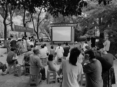 活动现场早早布置妥当,红色幕布在晚风中招展,小马扎整齐排列,空气中弥漫着爆米花的甜香与老冰棍的清凉。不少老人带着孙辈前来,孩子们追跑嬉笑,老人们则围坐在一起,拉着家常,等待电影开场,一派其乐融融的景象。“许多老人因行动不便或缺乏陪伴,常常闭门不出。我们希望通过这样的活动,让他们感受到社区的温暖,重拾生活乐趣。”沐晖居家养老服务中心负责人表示。