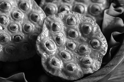 莲蓬的莲子、莲子心也各有妙用。《玉楸药解》记载:“莲子甘平,甚益脾胃,而固涩之性,最宜滑泄之家,遗精、便溏,极有良效。”莲子,顾名思义是莲的种子,长在莲蓬中,是李时珍盛赞的“脾之果”,具有补脾止泻、止带,益肾涩精,养心安神的功效,主治脾虚湿困引起的鼻塞流涕、咽异物感、咳嗽有痰、耳痛流脓等,是常用的药食同材之品。莲子心则是莲子中央的青绿色胚芽,味苦、性寒,归心经、肾经,具有清心安神、交通心肾、涩精止血的功效。对于整日劳心费神、频繁用脑的人来说,用它来泡茶,有助于提高效率,增强记忆力。