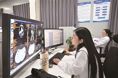 8月26日,在江苏省东台市数字健康驾驶舱,影像云诊中心的医务人员集中读片。近年来,东台市将全市两家龙头医院、6个农村区域医疗中心、18个镇卫生院、341个村卫生室(站)组建成紧密型数字化医共体,内设集中审方、转诊服务、影像云诊、健康随访等十大中心,持续提升基层医疗服务水平,让群众在家门口“看好病”。