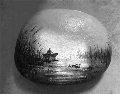 退休后,一次偶然的机会,李国强在社交平台上看到石头画,新的创作热情被点燃。散步时遇到好看的石头,他都会忍不住捡回家,先在脑海里构思“这块石头该画什么”;面对石头“毛孔粗大”难画细节的问题,他灵活变通:细腻石头画花鸟、粗糙石头绘山水,若仍有影响,就先涂一层白色涂料打底。如今,他家已攒下上百块石头画,有的绘西湖三潭印月,有的画枝头蜡梅,还有的描可爱猫狗。每一块石头画背后,都是他对生活的观察与热爱。“有时候画累了,看着这些石头画,心里就特别平静。”他说,绘画不仅丰富了退休生活,更让他学会用乐观心态面对生活风雨。