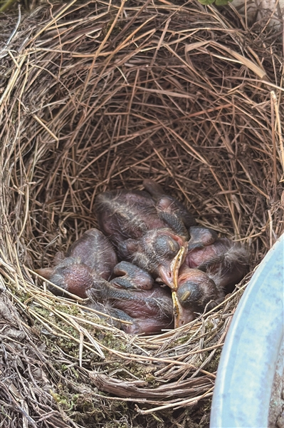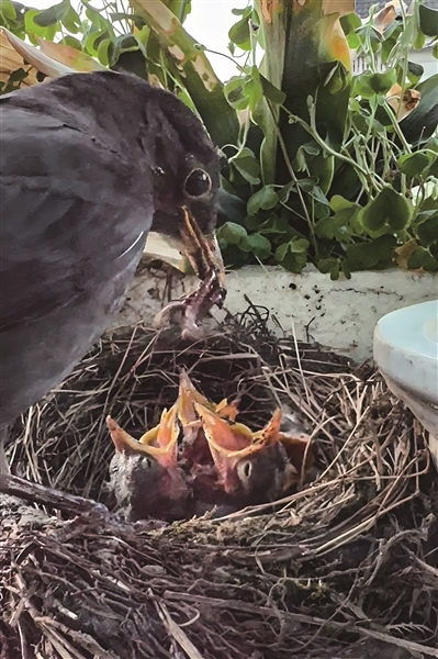 这一个月时间,吴女士满心期待见证小鸟离巢飞翔,为了不打扰乌鸫一家,都不敢开窗给绿植浇水。结果是一个悲剧结局,让她颇为感慨。“见识了大自然优胜劣汰的法则,生命真是不容易,我们要珍惜美好的自然环境,珍惜我们所居住的地球。”