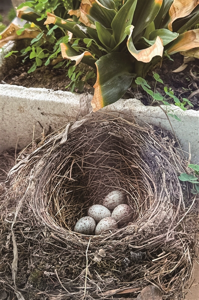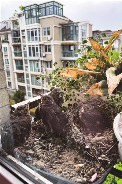 今年3月11日,萧山吴明娟女士惊喜地发现,窗台上有小鸟来筑巢。接下去几个月,从母鸟产卵到雏鸟破壳长大,自从有了新邻居,吴女士一家每天都有不一样的期待。