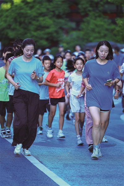 类似的“裂变”在杭州多个区域上演。滨江区缤纷未来社区的 “逐梦缤纷闪电跑团”,缘起于家长们的自发组织。今年开春,家长跳跳妈牵头组建跑团,成员均为该校二升三学生,暑期每周一、三、五的清晨,小区健身步道上总能看到这支十余人的小队伍。