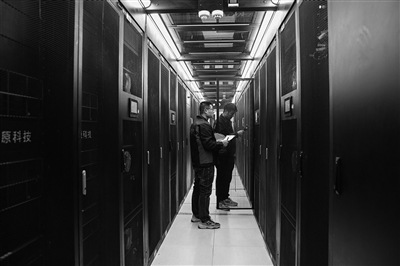 1月6日,工作人员在中国移动(甘肃·庆阳)数据中心机房内巡检。据新华社客户端