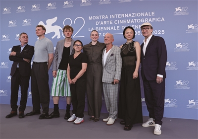 9月5日,在意大利威尼斯,电影《寂静的朋友》主创人员出席拍照式。电影《寂静的朋友》入围第82届威尼斯电影节主竞赛单元,将角逐电影节最高奖最佳影片金狮奖。